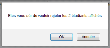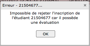 Il n'est pas possible de rejeter une inscription qui possède une évaluation de type Note ou Absence