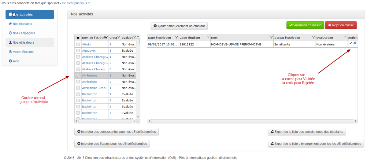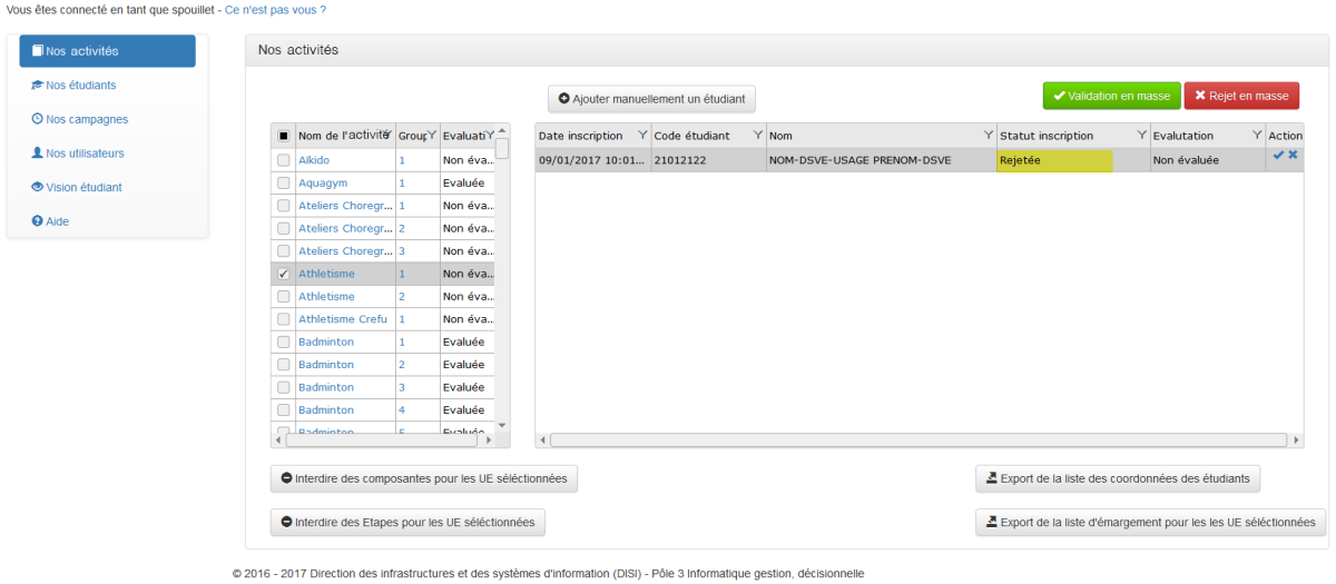 AttentionInterdiction de rejeter une inscription Evaluée⚓