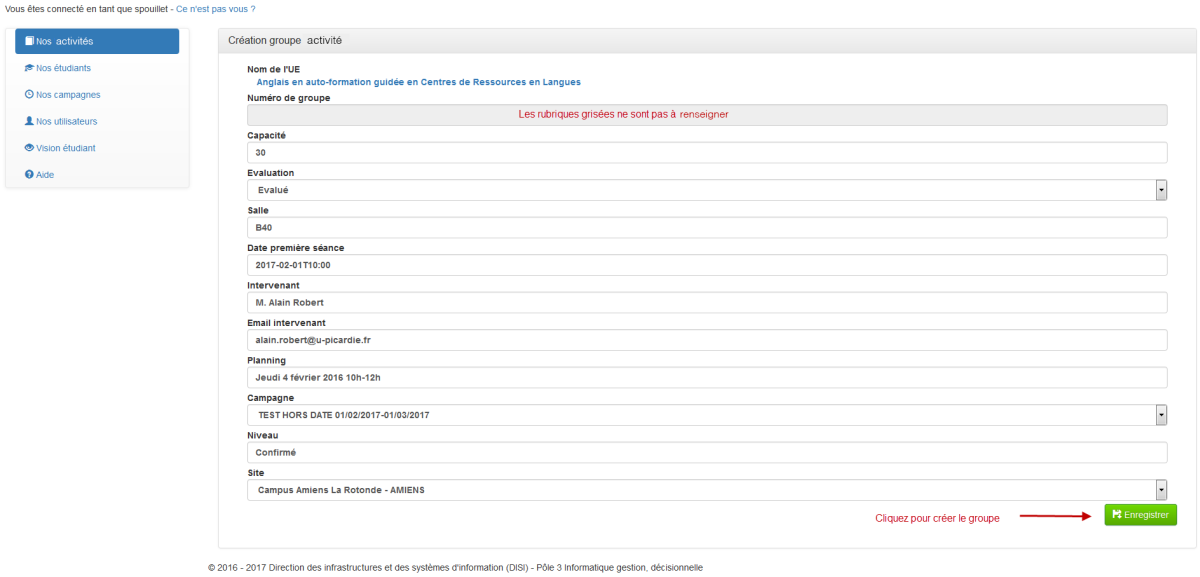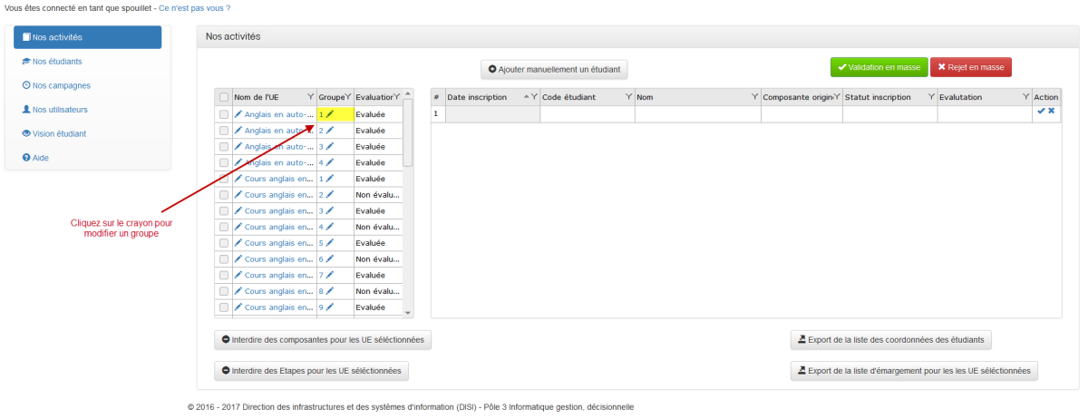 Edition GroupeCliquez sur le symbole Crayon du groupe.⚓Actions : Edition du Groupe.Actions : Procédez aux modifications de la description du group.Actions : Vos modifications ont été prises en compte.