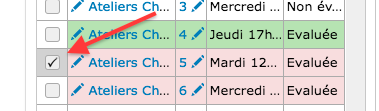 Action : Sélectionner un groupe d'activités évalué dont les évaluations sont validées (Ligne verte)