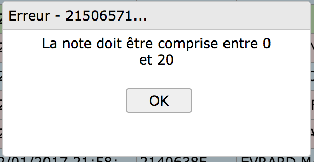 Remarque : La note doit être comprise entre 0 et 20