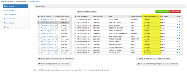 Conséquences : Affichage des étudiants correspondant à l'option de tri choisie.