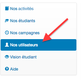 Prérequis : Être un utilisateur de type Scolarité et se positionner dans la section "Nos Utilisateurs"