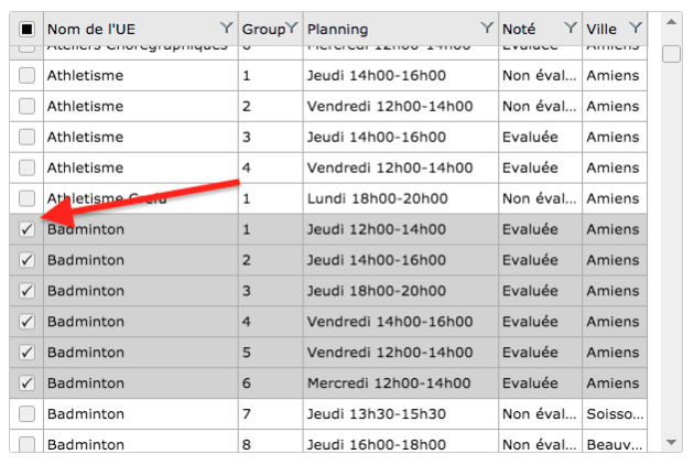 Action : Modifier la sélection et cliquer sur Valider