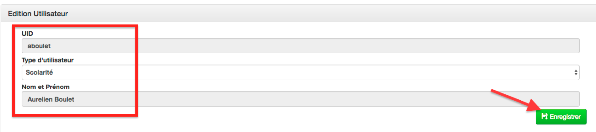 Action : Modifier les informations et cliquer sur Enregistrer