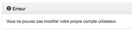 Remarque : Vous ne pouvez pas modifier votre propre compte utilisateur. Si vous en avez le besoin veuillez contacter pole3-tech@listes.u-picardie.fr